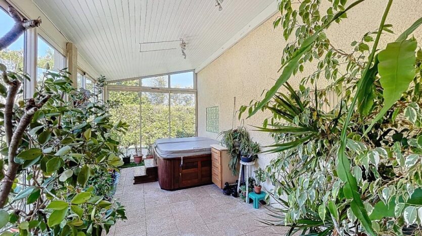 Ce niveau comprend également une véranda de 36m2 avec jacuzzi ouvert sur le séjour et inondée de lumière naturelle avec vue sur le jardin et la piscine.