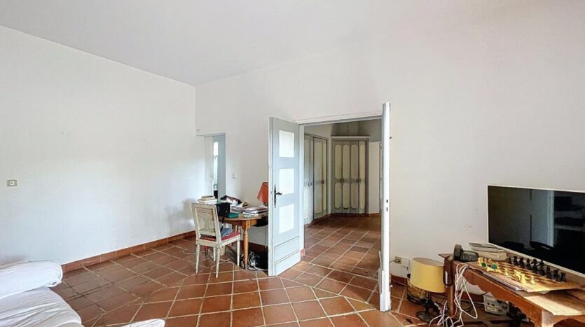 En rez-de-chaussée : Un vestibule, un vaste salon-séjour lumineux grâce à ses ouvertures et à son exposition sud est, un second séjour, deux cuisines, deux chambres, une salle de bains et un wc.
